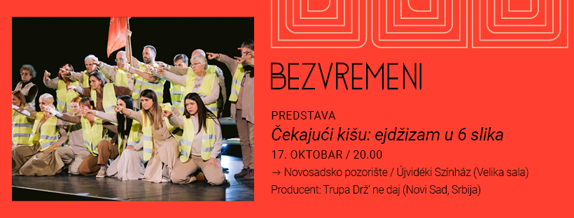U okviru festivala Bezvremeni biće izvedena predstava Čekajući kišu – rezultat šestomesečnog procesnog rada, koja kroz šest prizora problematizuje različite oblike ejdžizma, od strukturalnog i društvenog do institucionalnog. Kroz svakodnevne situacije u kojima stariji ljudi doživljavaju marginalizaciju i ravnodušnost, predstava osvetljava kako društveni i sistemski mehanizmi utiču na njihov život i dostojanstvo.