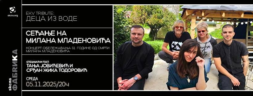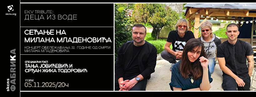 Deca iz vode /EKV tribute band project/ nastupiće u SKCNS Fabrici u sredu, 5. novembra u 20 časova. Ovim koncertom, na kom će im se pridružiti i gosti, Žika Todorović (bubnjar na albumima „Ljubav“ i „Samo par godina za nas“) i Tanja Jovićević (prateći vokal na albumima „Samo par godina za nas“ i „Dum Dum“) obeležava se 31. godišnjica smrti Milana Mladenovića. Ovo će biti i prilika da novosadska publika, prvi put nakon 35 godina, vidi Žiku i Tanju ponovo zajedno na bini u izvođenju pesama EKV-a.
