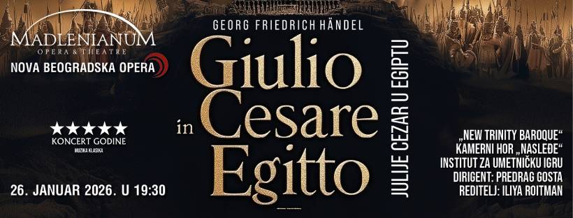 Premijera opere Giulio Cesare in Egitto u Madlenianumu predstavlja prvo inscenirano izvođenje ovog dela u Srbiji na istorijskim instrumentima i održava se na Dan Madlenianuma, koji se tradicionalno obeležava 26. januara. Ovaj događaj jedan je od centralnih opernih trenutaka sezone i potvrda trajne posvećenosti Madlenianuma vrhunskim ostvarenjima svetske muzičke baštine. Produkcija je razvijana i kroz rad na Beogradskoj baroknoj akademiji, u okviru koje Studio za ranu muziku intenzivno radi sa mladim talentovanim solistima.