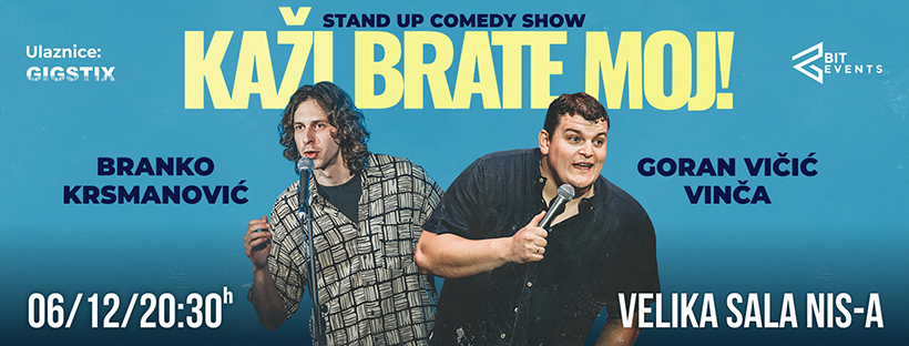Branko Krsmanović i Goran Vinčić dva su potpuno različita komičara, ali obojica vole komunicirati s publikom! I ne samo to, njih dvojica su generacija, imaju isto godina, često se u međusobnoj konverzaciji zovu sa “brate” i nerijetko to stvarno misle! Dođi na novi duo stand up show, a ako te nešto zanima - kaži brate moj!