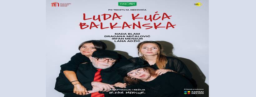 Ovim putem vas obaveštavamo o novosadskoj premijeri pozorišne predstave, komedije ''LUDA KUĆA BALKANSKA'', u izvodjenju IRFANA MENSURA, NADE BLAM, DRAGANE GAGE MIĆALOVIĆ I LANE ADŽIĆ, koja će se održati u ČETVRTAK, 4. DECEMBRA 2025 godine sa početkom u 20,00 sati u VELIKOJ SVEČANOJ SALI NIS-a, u Novom Sadu.