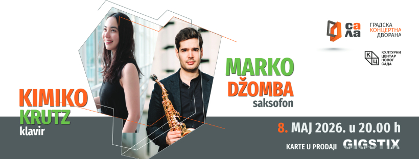 U petak, 8. maja u 20 časova, u Gradskoj koncertnoj dvorani biće održan koncert izuzetnog dua – Marko Džomba (saksofon) i Sylvia Kimiko Krutz (klavir). Publiku očekuje veče vrhunske interpretacije, snažne umetničke energije i pažljivo odabranog programa koji spaja romantizam, modernizam i strast tanga.