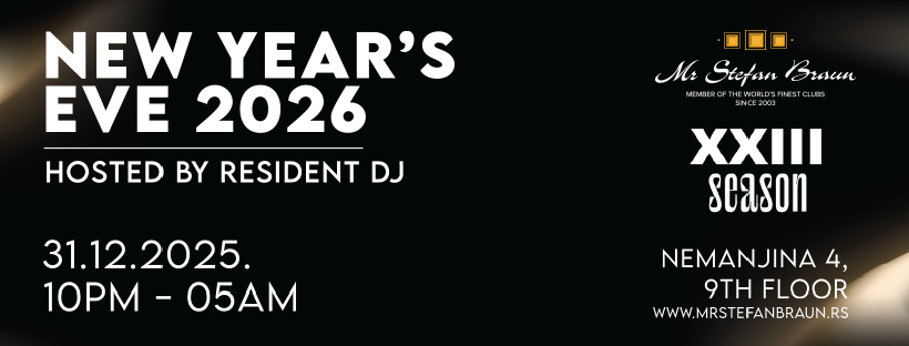 Doček nove godine u noćnom klubu Mr. Stefan Braun sa početkom od 22h.