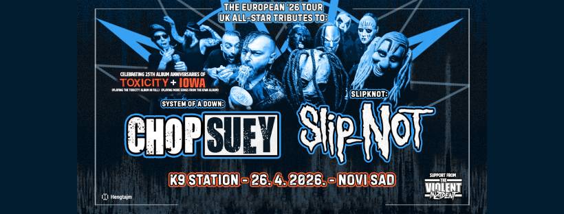 Nakon fenomenalnog Forever NU festivala, koji je ozbiljno podigao lestvicu tribute scene u regionu, Chop Suey i Slip-NOT premijerno dolaze u Novi Sad kako bi priredili žurku za pamćenje. I teško da može biti drugačije kada se na jednom mestu okupi toliko vrhunskih muzičara sa doslovno hiljadama odsviranih koncerata. Njima se 26. aprila u