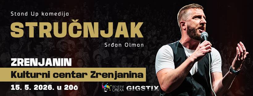 U Zrenjaninu 15.05. Srđan Olman izvodi svoj novi Stand Up Show “Stručnjak” od 20h u Kulturnom centru Zrenjanina.