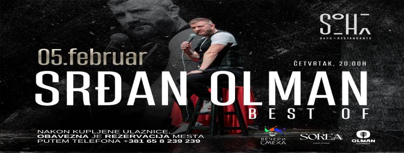 Zbog velikog interesovanja, u Novom Sadu, 05.02. Srđan Olman ponovo izvodi svoj Stand Up Show “THE BEST OF” od 20h u SOHA baru.