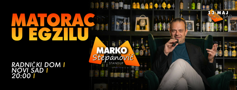 Stand up komedija Marka Stepanovića "Matorac u egzilu", 13.maja u Radničkom domu sa početkom u 20 časova.