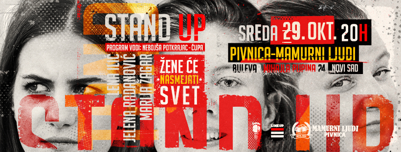 U sredu, 29. oktobra, u novosadskom pubu Mamurni ljudi sprema se eksplozija smeha i dobrog raspoloženja! Nakon brojnih uspešnih stand-up večeri koje su Novosađanima redovno popravljale raspoloženje (čak i kad padne ispit ili plata kasni), stand-up ženska trojka iz organizacije Standup.rs – Jelena Radanović, Marija Žagar i Lena Ilić –drugi zajednički nastup u ovoj sezoni. Ovog puta program će voditi Nebojša Potkrajac Čupa.