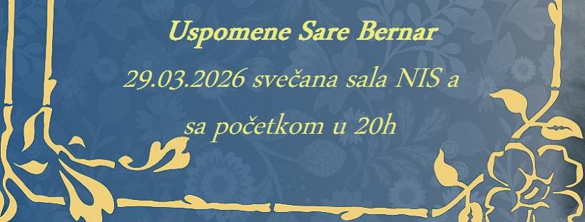„USPOMENE SARE BERNAR“ | 29.03. | Pozorišna sala NIS-a
