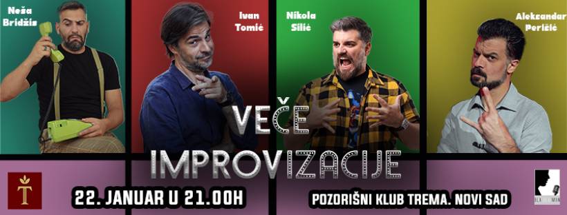 Veče improvizacije - Neša Brižis, Ivan Tomić, Aleksanar Perišić, Nikola Silić 22. januara u pozorišnom klubu Trema.