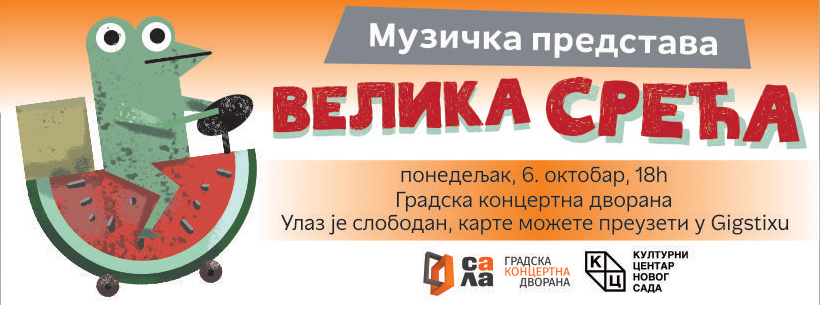 Draga deco, povodom obeležavanja Dečije nedelje, pozivamo vas na čarobnu muzičku predstavu „Velika sreća“, koja će se igrati u ponedeljak, 6. oktobra u 18 časova u Gradskoj koncertnoj dvorani.