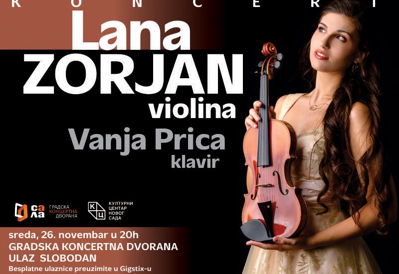Publiku Gradske koncertne dvorane očekuje izuzetan muzički doživljaj – koncert jedne odnajperspektivnijih mladih violinistkinja regiona, Lane Zorjan, uz klavirsku pratnju VanjePrice.